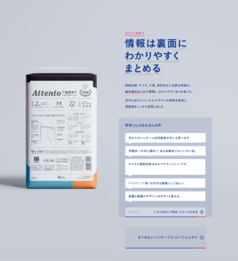 アテントの「かくさないパッケージをつくろう」プロジェクト、パッケージ完成発表ページを企画・制作しました。対話からデザインが生まれた軌跡をコンテンツ化しています。#常識をはきかえよう というアテントの呼びかけに、「紙パンツのパッケージを、もっとおしゃれにしてほしい」という声が多く集まったことから、このプロジェクトは始まりました。買いやすく持ち歩くとき恥ずかしくない常識にとらわれないパッケージ。