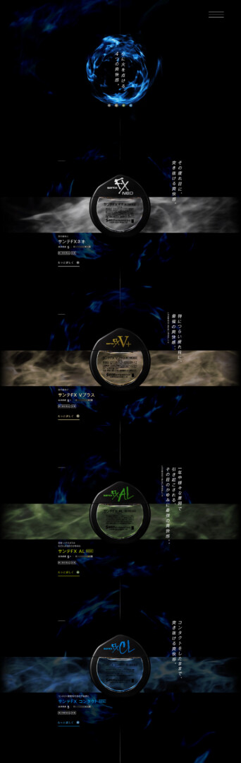 人々が内に秘める「野心」を肯定し、気持ちを静かに高める「サンテFX」。そんな密かなる「野心」の象徴である青い炎を、静かに燃え上がらせる演出を軸に新しい「サンテFX」の世界観を表現しています。突き抜ける爽快感で、心を静かに燃やしてみてください。鼓舞され、高まった心のなかに言葉が溢れるかもしれません。「キタ。」って。