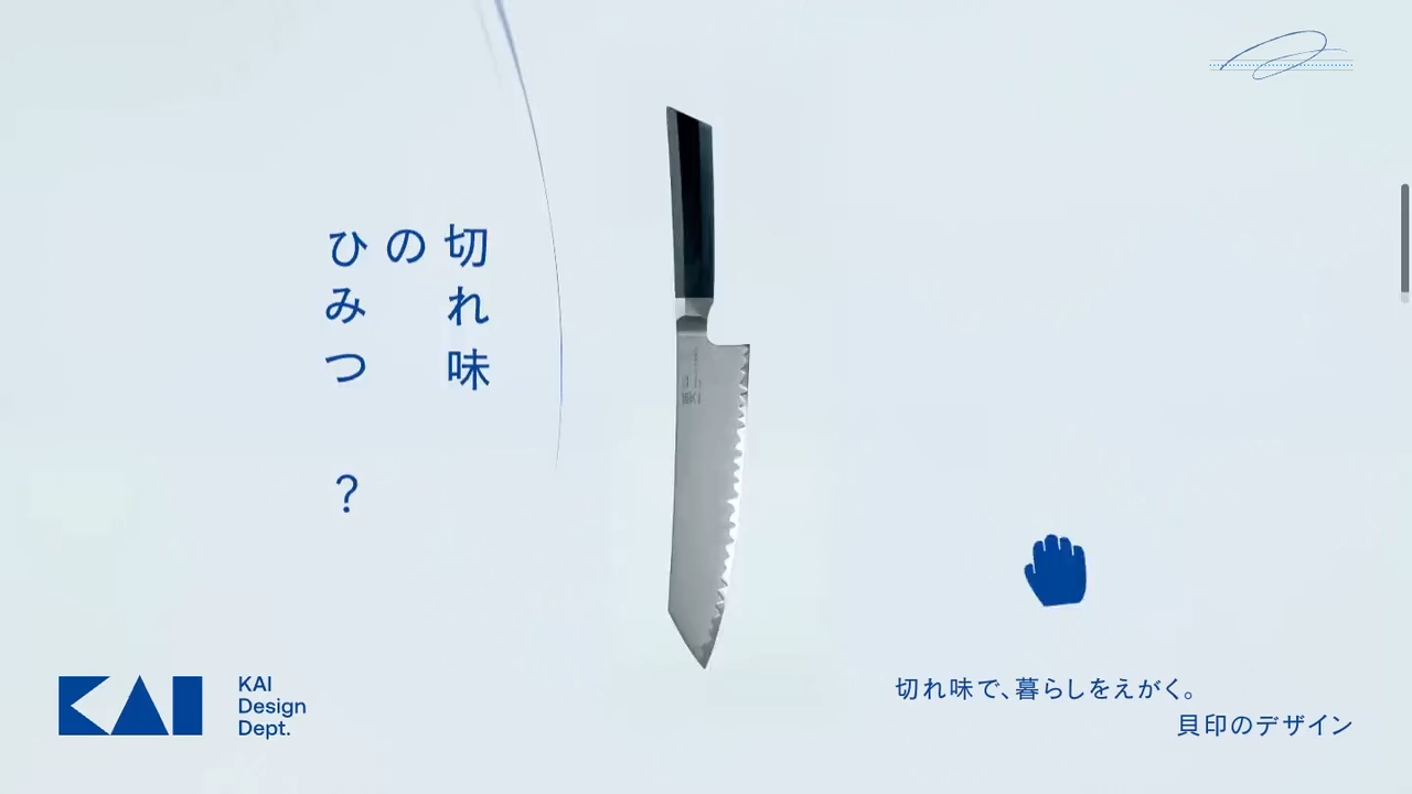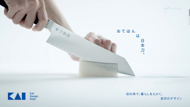 貝印のデザイン哲学を広く知ってもらうため、Webをはじめとして、展示サイネージや新聞広告などの多様なメディアで展開しました。Webサイトは、貝印製品ならではの切れ味や使いやすさ、プロダクトとしての美意識を体感できるようにインタラクションを交えた演出を実施。ユーザーが映像に介入できる「さわれる映像」として表現することで、プロダクトの立体美も体験できるようなサイトを制作しました。