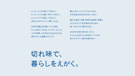 デザインフィロソフィーとしてメインコピーとステートメントを策定しつつ、貝印のデザインを支える三つの視点として「美の印」も定義しました。