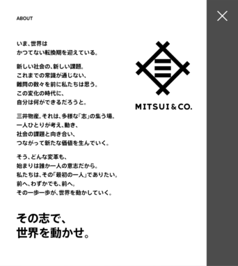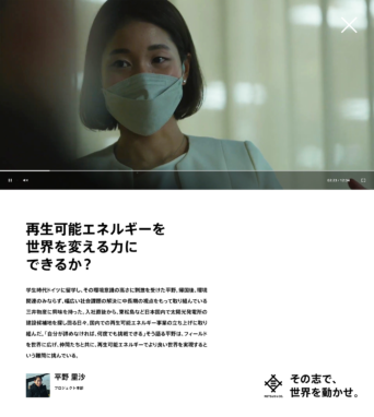 三井物産「その志で、世界を動かせ。」スペシャルサイトの企画・制作を行いました。社員の方々が向き合う「難問」のスケールと多様性、それらに挑む「志」の強さをコンテンツと演出の両軸で表現しました。