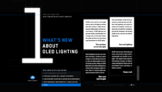KONICA MINOLTAの新技術・有機EL照明のプロモーションサイトです。有機EL照明の特徴である、「面で照らす」「曲がる」「薄い・軽い」「熱くならない」という4つの特性を訴求しています。トップページでは有機EL照明の特性を表現した映像を69個、世界観を構築するための音56フレーズ ( 3トラックに振り分け ) を映像と音、それぞれをランダムに組み合わせて再生し続ける仕組みを構築し、新技術への興味喚起を目指しています。また、有機EL照明の特性をレイアウトや動きに取り入れつつ、難しくなりがちな印象を和らげるため、デコラティブな書体を用いつつ、英語版、日本語版ともにトーンの一貫性を持たせています。