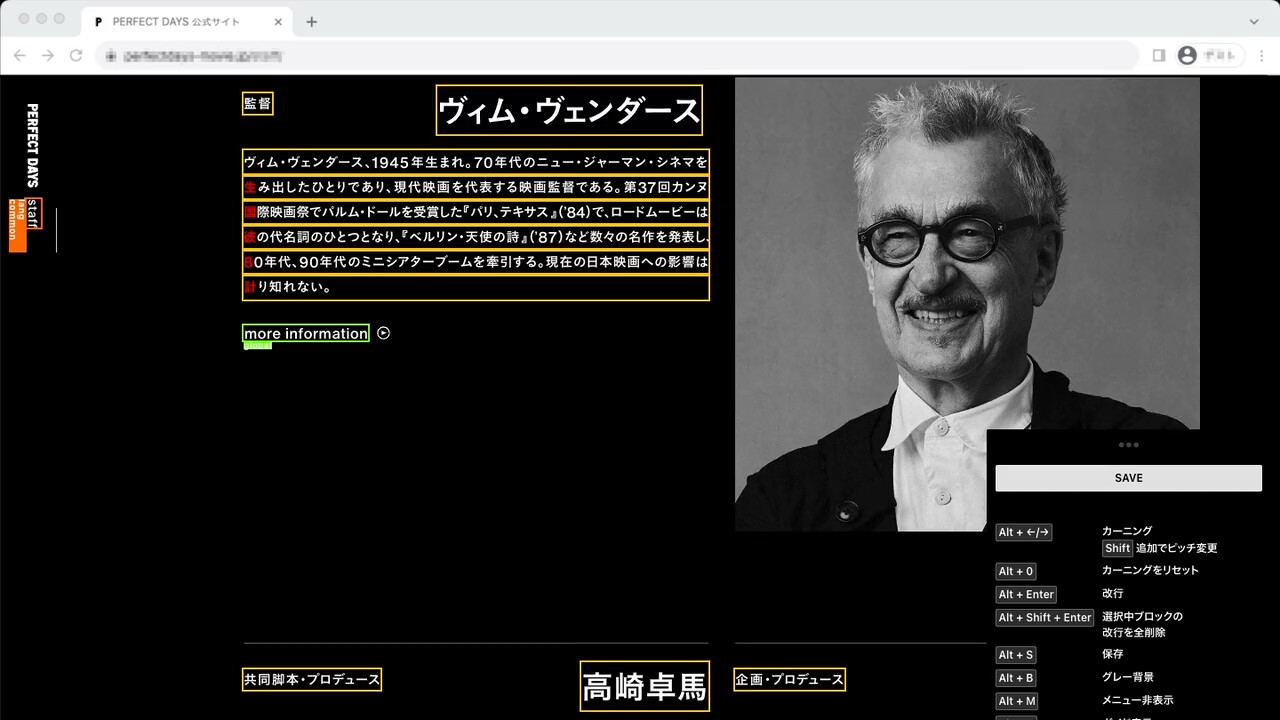 映画『PERFECT DAYS』の世界における「静かな感情の揺らぎ」を損なうことなく、映画の主人公に迫るための“もうひとつの物語”としてWebサイトを設計。予告編や劇場情報を並べるだけでは伝わらない作品の魅力を届けるために、テキスト・映像・音響を繊細に統合したWebならではの表現を行いました。