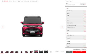 見積りシミュレーション ( デザインのカスタマイズ機能を含む ) では、TOYOTA.jpの重要な機能として、お客様が車種のデザインや装備をカスタマイズし、見た目をその場でリアルタイムで確認、また概算見積りがわかるように「見積りシミュレーション」を企画制作しました。「タンク」「ルーミー」の2車種にて体感いただくことができます。車種サイト「CROWN ATHLETE」に関しては、構造を全面的に見直し、4つのカテゴリに整理し、トップページで全体の概要をつかみ、「外観、室内、性能、グレード」の4つのカテゴリトップページのみで車全体のより詳細な概要を短時間でつかめるように編集デザインしました。より詳しい情報を知りたい方は下層ページにて情報を取得することができ、全方位的なユーザーニーズを満たしながらも、より車を検討する時間を早め、ビジュアルとして楽しめるように設計デザインしました。