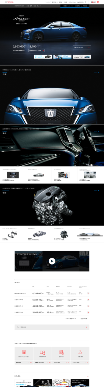 トヨタ自動車 ウェブサイトのリニューアルをさせていただきました。合わせて「CROWN ATHLETE」の車種サイトも企画制作しています。