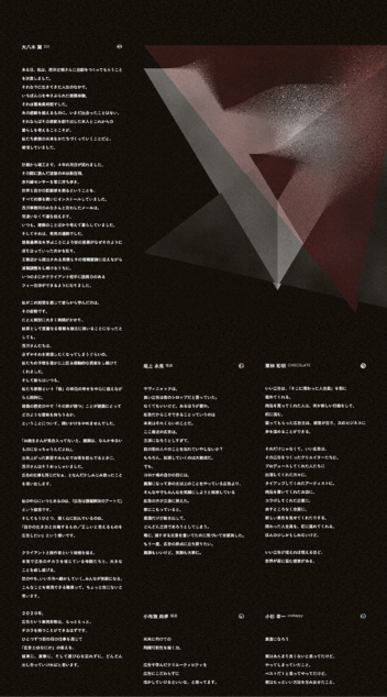 ACC TOKYO CREATIVITY AWARDS ブランデッド・コミュニケーション部門の告知ページを制作させていただきました。広告についてあらためて向き合い、考え、これからの世界にどう役に立つのか議論する。審査会がそんな場になることを目指して、審査委員の方々が広告について改めて思考し、言葉を寄せました。十人十色で重みのある言葉たち。その言葉たちに温度感や色彩を宿せるように、デジタルだけどそれでいて手触りのある表現を目指しました。広告に携わるひとでなくとも色んな角度から心に刺さり、ときに考えさせられたり、ときに勇気づけられたり、ときに共感したり、ときに身が引き締まったり、心を動かされると思います。ぜひ御覧ください。そして、そんな議論の場にぜひとも作品を応募してみてください。
