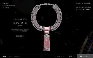 国立新美術館で開催される「カルティエ、時の結晶」のウェブサイトを企画・制作させていただきました。2019年10月2日から「カルティエ、時の結晶」が国立新美術館で開催されます。展覧会は、「時間」をテーマとして、1970年代以降から現代までの作品を中心に、革新し続けてきたカルティエのデザインの軌跡を辿っていきます。会場での、実際の鑑賞体験のように空間を感じながら、自由に見てまわれる、そんな体験がスクリーン上でも感じられるウェブサイトを目指しました。展示の世界観を表現するにあたり、各章で使用する什器や素材の映像を撮影し、さらに、各章のイメージにあった音楽を重ねることで、展覧会全体の上質な雰囲気を演出しています。それに加え、宝石が結晶化される姿を粒子で表すことで、目には見えない「時間」を表現しました。ウェブサイトはもちろん、何よりぜひ会場へ足を運び、実際の展覧会を体感してみてください。