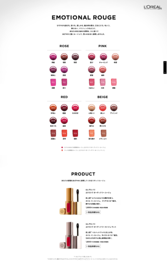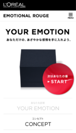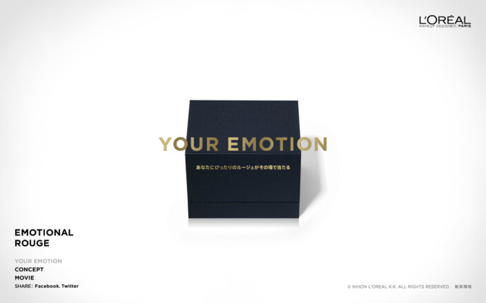ロレアル パリの新商品エクストラオーディナリールージュのプロモーションサイト「EMOTIONAL ROUGE」を制作させていただきました。感情を言葉でストレートに言うのではなく、さりげなく表現するパリジェンヌのように、発色のいいロレアルのルージュであざやかに感情を表現しましょう、というコンセプトのもと、短編ムービーと診断コンテンツを制作しています。ムービーでは、内気で感情表現が苦手な1人の女性が登場します。突然、黒い箱を手渡され、開けて見ると3本のルージュが入っており、試しに塗ってみる。すると、次第に新しい自分や様々な感情と出会い、日常がより素敵に変化する、というストーリーになっています。映像が終わったあとは、ユーザー自身の感情を表現するのにぴったりなルージュの色を知る事ができる、診断コンテンツが展開されます。現在この診断コンテンツは、プレゼントキャンペーンを行っております。診断結果をSNSにシェアすると、自分専用に選ばれたルージュがユーザープレゼントされ、映像の女性を追体験できるような仕組みになっています。