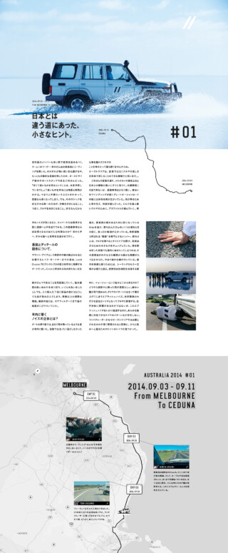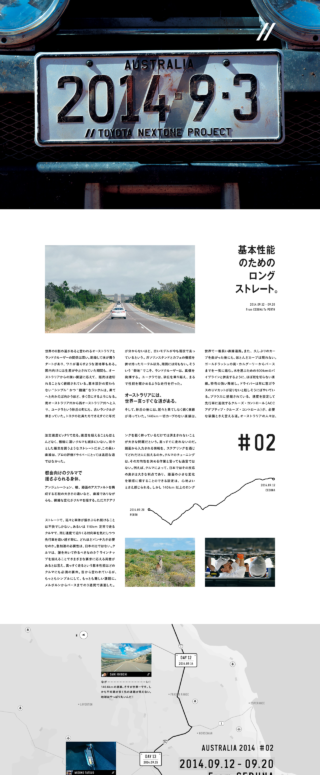 “いいクルマづくりとは何か?”を問い続ける、TOYOTAの思いやそのコンテンツをこめたウェブサイトとなりました。「もっといいクルマづくり」と、それを支える「人づくり」のためにスタートした5大陸走破プロジェクト。2014年に公開した豪州走破からはじまり、北米走破、南米走破・・・と毎年1大陸ずつ走破していきます。国内スタッフと現地スタッフ合わせて100名を超すTOYOTAスタッフの皆さんによる走行レポートと、その走破の道筋を辿れるコンテンツになっております。