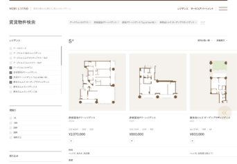 森ビルの創る住宅に住むということは、森ビルの創る街に住むということ。住宅に関する情報を通して、森ビルが育んできた「都市に暮らす豊かさ」が伝わるように、情報設計とコピーライティングを行っています。また、機能面ではユーザーが迷わず検索できるようにインタフェースの設計開発も行いました。