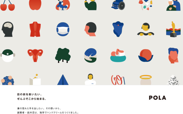 11月5日POLA新聞広告「目の前を救いたい。ぜんぶそこから始まる。」のWEBサイトを制作しました。VISIONサイトでの手触り感はそのままに、草の根で行われるたくさんの「ケア」を気持ちよく見ていけるサイトを目指しました。
