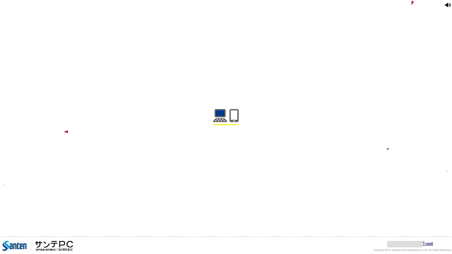 参天製薬が新しく発売した、ブルーライトなどの光ダメージに効く目薬、「サンテPC」の商品紹介サイトです。PCやスマホのモニタからブルーライトが発生、かつ目にダメージを与えている様子が可視化されたメインビジュアルを軸に、サイト上では「まさにいま、PCやスマホを見ているこの画面からもブルーライトがどんどん出ている」様子が、直感的に伝わる作りのサイトとなっています。トレインチャンネルや店頭広告、ポスターなどで展開されている世界観に、さらにコミカルな動きやかわいらしいサウンドを追加することで、よりキャッチーに印象が伝わるよう目指しました。サンテPCを使用したときに感じられる清涼感や気持ちよさが、サイト全体を通して伝わるよう意識しています。また、ユーザーが何もしなくても自動的に画面が遷移していくので、一本の長いムービーをみているような感覚で読み進めていくことができる構造にしました。自分で操作したいときは右側のスクロールバーでも移動できるよう工夫しています。