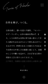 伝統工芸「甲州印伝」を受け継ぐ、印傳屋によるプロジェクト、「Sense of Wonder」のウェブサイトを制作させていただきました。印傳屋は、創業から四百年以上にわたり、「甲州印伝」の技を受け継いで来ました。自然を尊び、つくり伝えてきた印傳屋の歩みは、自然との歩みでもあります。本サイトでは、印傳屋の自然への想いと営みを、美しい映像と写真で構成ました。印伝の模様をまとめたページでは、模様一つひとつから、自然への感嘆の想いや、畏愛のこころが、見てとれます。映像は、TANGRAM、赤地剛幸さん監督によるものです。
