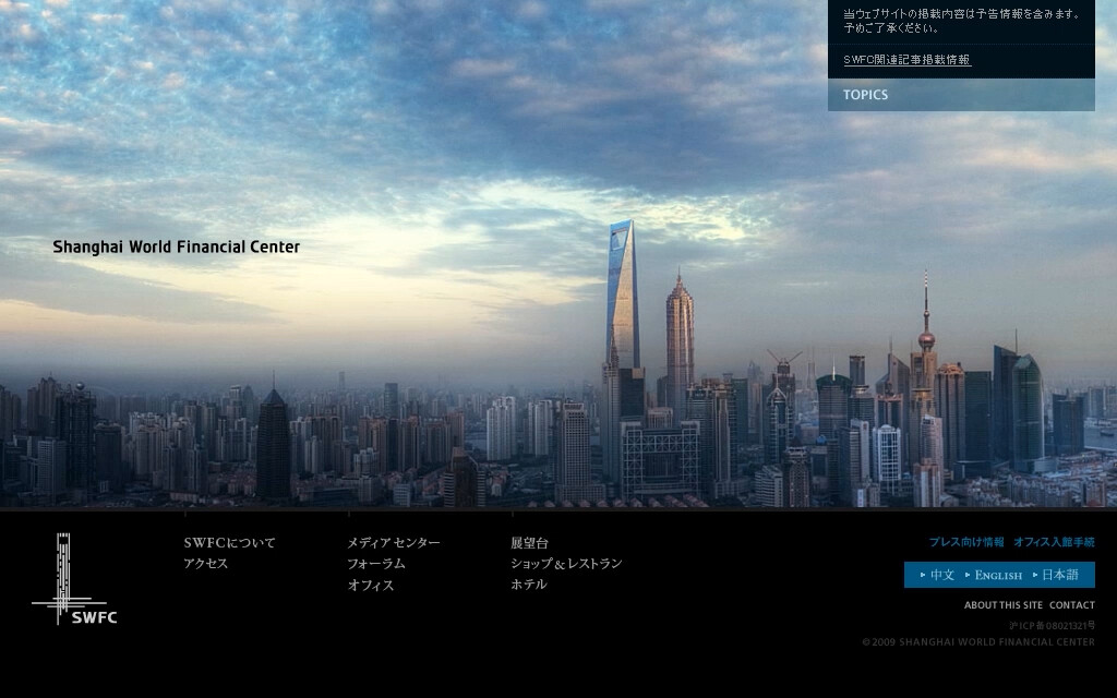 2008年、森ビル初の海外プロジェクトとして、上海に地上101階建て、高さ492mの「Shanghai World Financial Center」( 以下SWFC )が竣工されました。SWFCは「垂直庭園 ( 複合 ) 都市」という考え方で進められ、 建てられたあとも、どのように地域に根差し、貢献していけるかを真剣に考え取り組んでいます。 本ウェブサイトでは、SWFCの思想を体現した写真や言葉を、すべての施設情報を縦に積み上げたインターフェースに入れ込み、SWFCをウェブサイトそのもので表現しています。