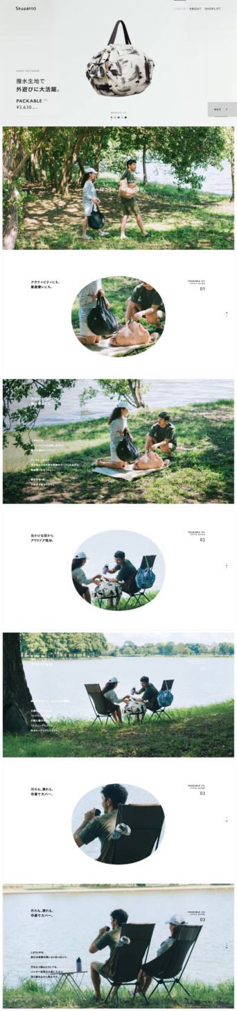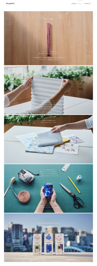 Shupattoの特徴を再定義し、リニューアルのコンセプトを決めていきました。一気にたためる機能、柔らかいプリーツ構造、買い物から普段使いまでの対応力これらを整理し、「デザインバッグ」としての価値を明確化。従来の主婦向けイメージから脱却し、幅広いユーザーへのアプローチを目指しました。トップページでは、この「一気にたためる機能」をコマ撮り映像で直感的に表現。バッグの動きを視覚化し、Shupattoをまだ知らない人や海外ユーザー、既存ファンにも、機能だけでなく使う楽しさも伝えるコンテンツを目指しました。