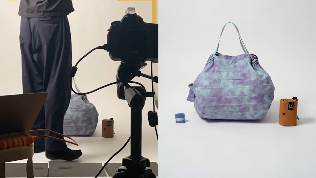Shupattoの魅力を直感的に伝えるため、トップページのキーヴィジュアルにはコマ撮り映像を採用しました。撮影は岡崎氏が担当し、1コマずつ丁寧に制作することで、Shupattoに命を吹き込む表現を実現。総カット数2000枚、4日間に及ぶ撮影は、膨大な作業量となりました。制作の裏側では、連番画像の余白や表示位置を微調整し、PCとスマホ双方で最適な表示を一枚ずつ調整。こうした地道な作業と職人技により、バッグが生きてる!という映像が生まれました。