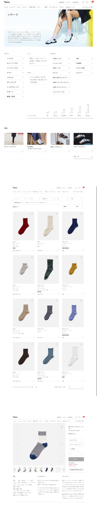 ECサイトを使いやすくするだけでなく、継続的に改善していくことを念頭におき、コミュニケーションやビジネス、既存の生産体制やクライアント内のワークフローにいたるまで深く理解をさせていただき、ウェブサイトに反映をしました。靴下への愛をもち、モノづくりに本気なTabioの良さが、どことなく伝わってくるように。いつも使う靴下をいつでも買えるし、ザッと眺めて気分で買える楽しさも大切にしています。同時に、タビオのこだわりというコンテンツも作成しました。いつも何気なく使って買っている靴下ですが、”タビオはここが他と違うのか。”という発見があると思います。ぜひご覧ください。