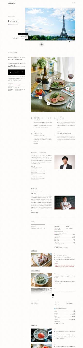 いつもの食卓を旅の舞台に変えるミールキットサービス「table trip」のECサイトを制作させていただきました。「table trip」はSUNTORYとELLEグルメのコラボレーションによって生まれた食体験サービスです。さまざまな国の料理とそれに合うお酒、また現地の魅力をたっぷりと詰め込んだトリップブックをお届けします。ウェブサイトでは、旅に出る時の高揚感やワクワク感をサイト全体で表現。トランクから飛び出した生き生きとした食材たち、旅先で出会った体験をカメラで切り取るような演出で、まるで旅をしているかのような楽しい気持ちになってもらえるサイトを目指しました。さあ、トランクを開いて旅にでかけましょう!