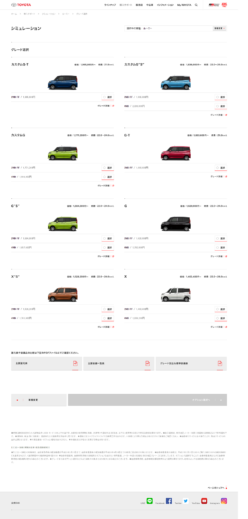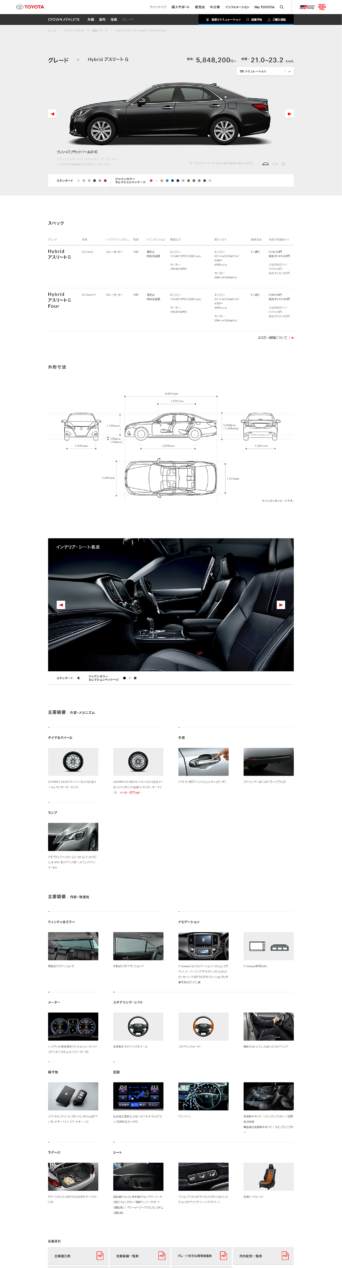 見積りシミュレーション ( デザインのカスタマイズ機能を含む ) では、TOYOTA.jpの重要な機能として、お客様が車種のデザインや装備をカスタマイズし、見た目をその場でリアルタイムで確認、また概算見積りがわかるように「見積りシミュレーション」を企画制作しました。「タンク」「ルーミー」の2車種にて体感いただくことができます。車種サイト「CROWN ATHLETE」に関しては、構造を全面的に見直し、4つのカテゴリに整理し、トップページで全体の概要をつかみ、「外観、室内、性能、グレード」の4つのカテゴリトップページのみで車全体のより詳細な概要を短時間でつかめるように編集デザインしました。より詳しい情報を知りたい方は下層ページにて情報を取得することができ、全方位的なユーザーニーズを満たしながらも、より車を検討する時間を早め、ビジュアルとして楽しめるように設計デザインしました。