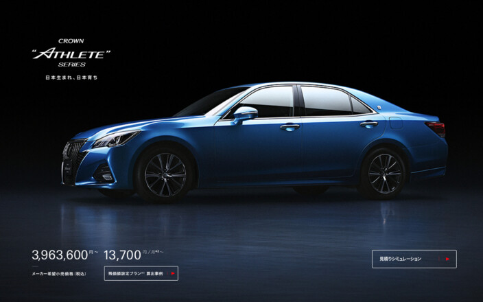 トヨタ自動車 ウェブサイトのリニューアルをさせていただきました。合わせて「CROWN ATHLETE」の車種サイトも企画制作しています。